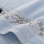• Krásny uterák v modrej farbe je zdobený raz bordúrou s obrázkami spiacich mačičiek.
